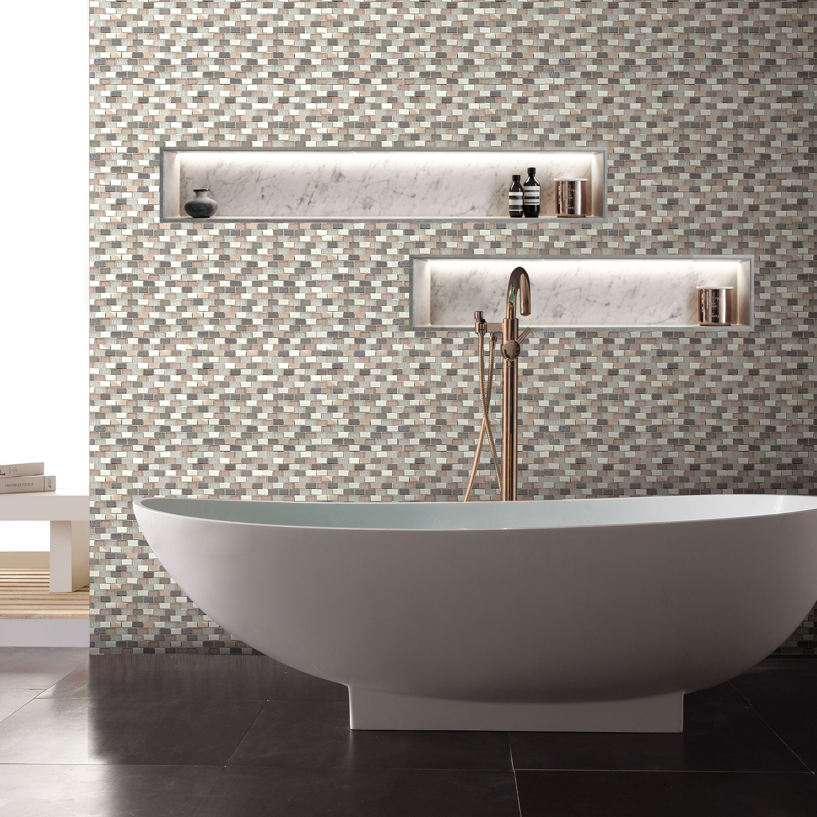 Obs.: Podem ocorrer variações de cor e padrão em pastilhas de pedra natural. Esta é a verdadeira beleza deste produto.