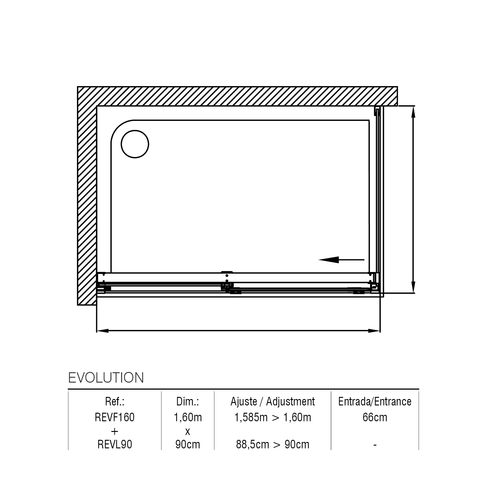 Obs.: Com opção de painel lateral fixo de 70, 80 e 90cm